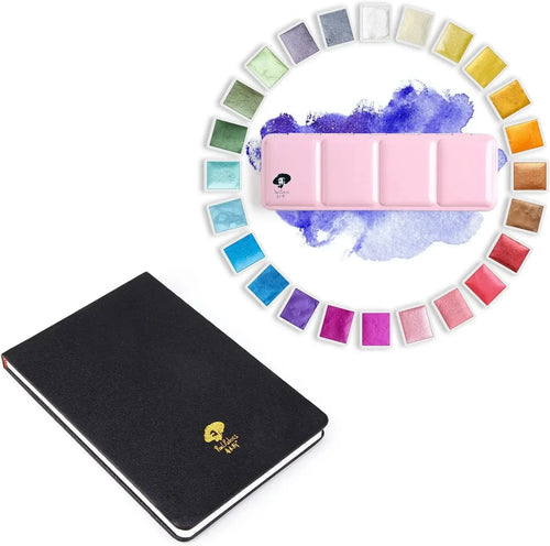 [[===========Paul Rubens 24 Colors Solid Watercolor Paint And 5.8 x 4.1 Inches Organ Style Watercolor Paper, 140lb/300GSM 50% Cotton Hot Pressed Pack of 2 (20 Sheets) -