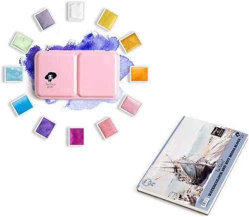 [[==Paul Rubens Watercolor Paint, 12 Assorted Colors with Glitter Sparkle Effect Art Supplies Watercolor Paper, 100% Cotton Hot Press Watercolor Journal 7.6??ยจยค x 5.3??ยจยค, 20 Sheets (140lb/300gsm), Acid-Free -